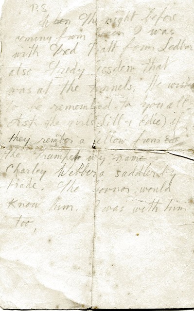 Ask the girls (Lill & Edie) if they remember a fellow from the Trumpet very name Charley WEBBER a saddler by trade. The Govnor would know him. I was with him too.